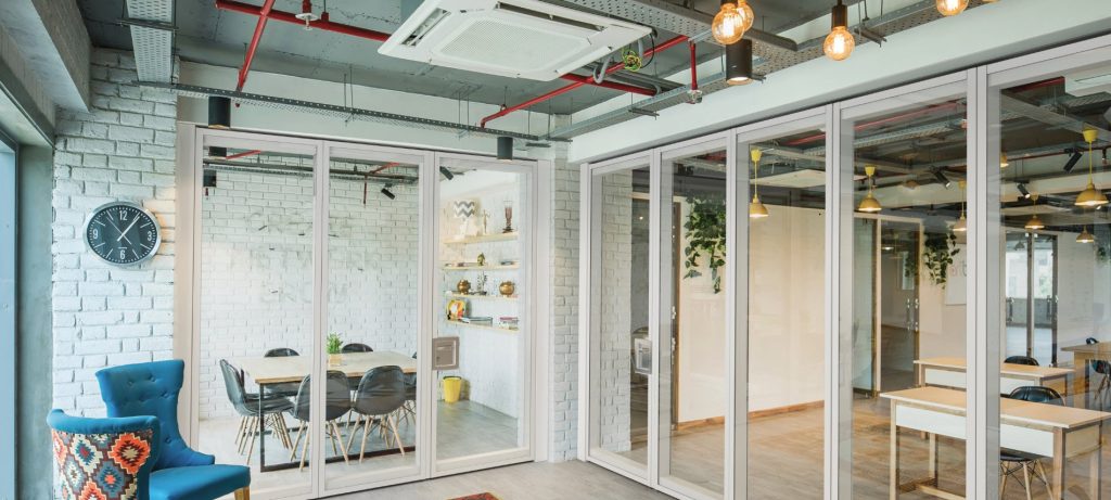 Available in up to 10’-0″ tall panels, Luminous Nova is the bright new workhorse in the Kwik-Wall lineup of industry-leading interior movable glass walls!