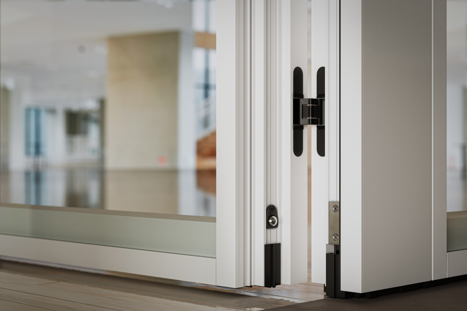 Nova is offered in two top-supported manual configurations: individual multi-directional panels, or individual, center-stacking panels, with manual seal activation that requires no panel-to-panel collision of bayonet-style plunger seals. With just few convenient rotations, the seals engage tightly to the floor. Both Nova configurations are available with full-height, hinged closure panels, and inset pass doors with full panic hardware options.